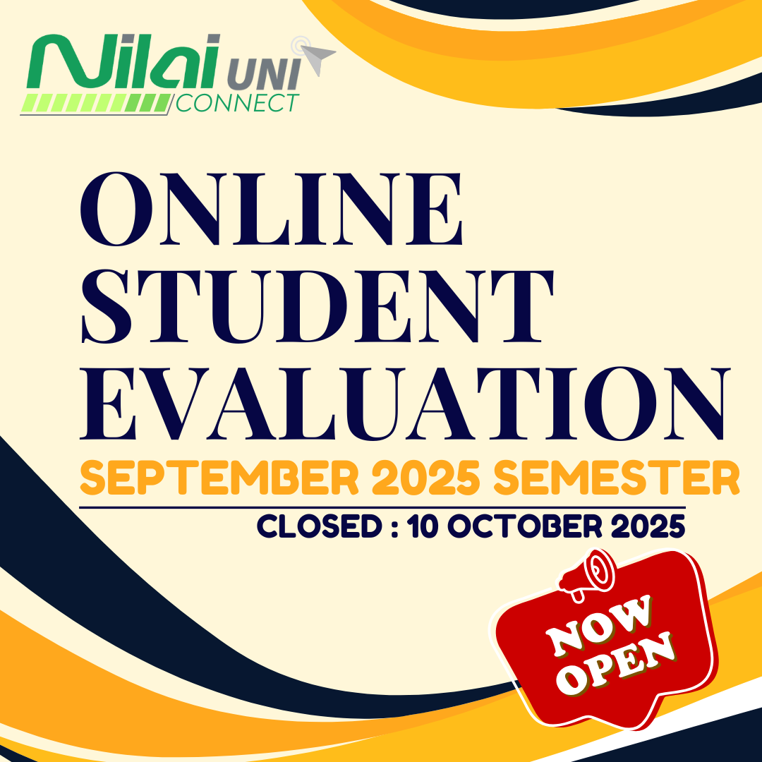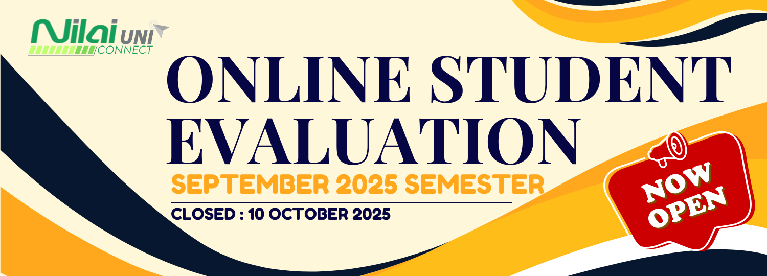 The online student evaluation for SEPTEMBER 2025 SEMESTER (TERM:2512) has been activated in student portal (CMS). Please submit the completed evaluation form for each course. The online student evaluation will open until 10 OCTOBER 2025.