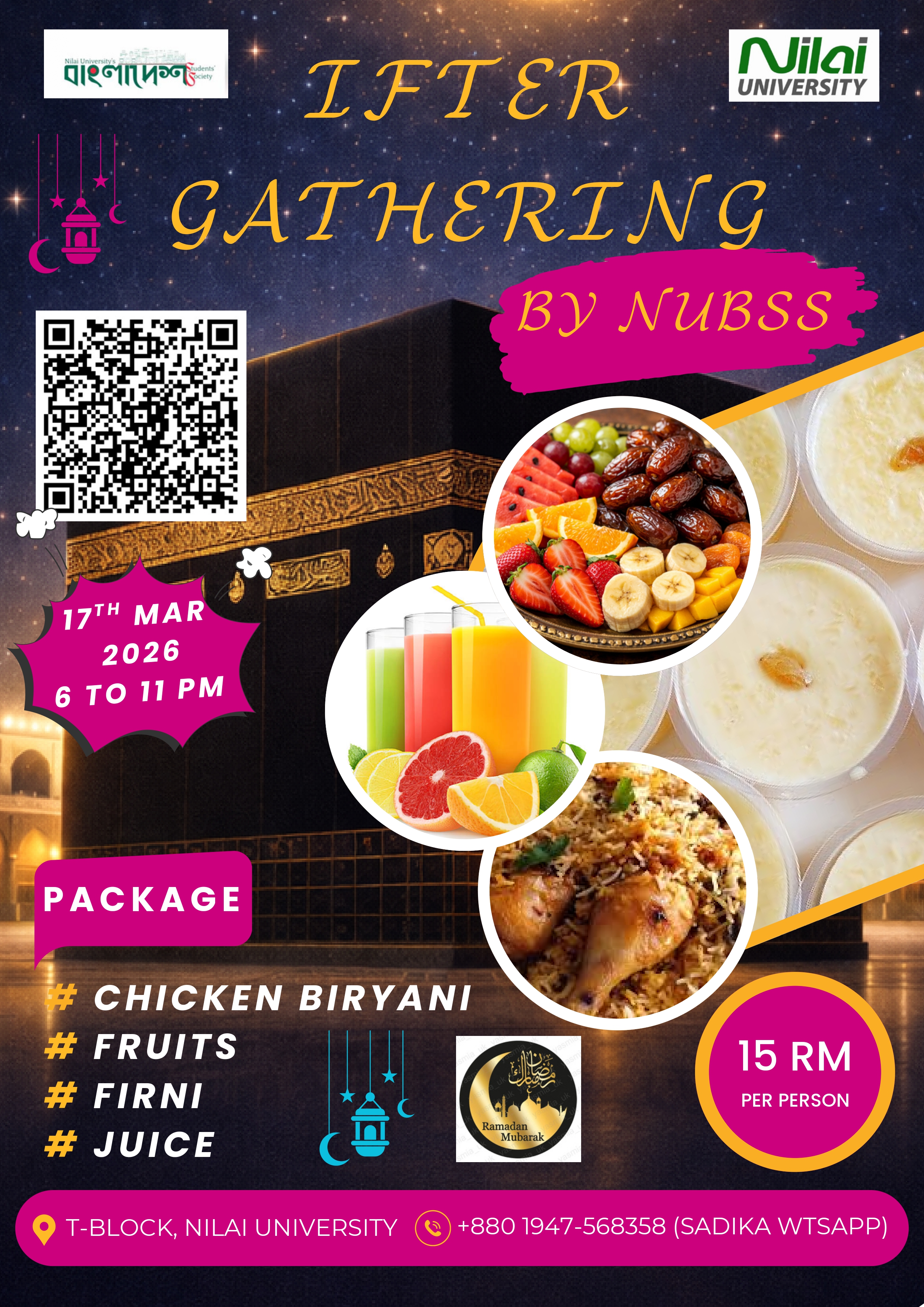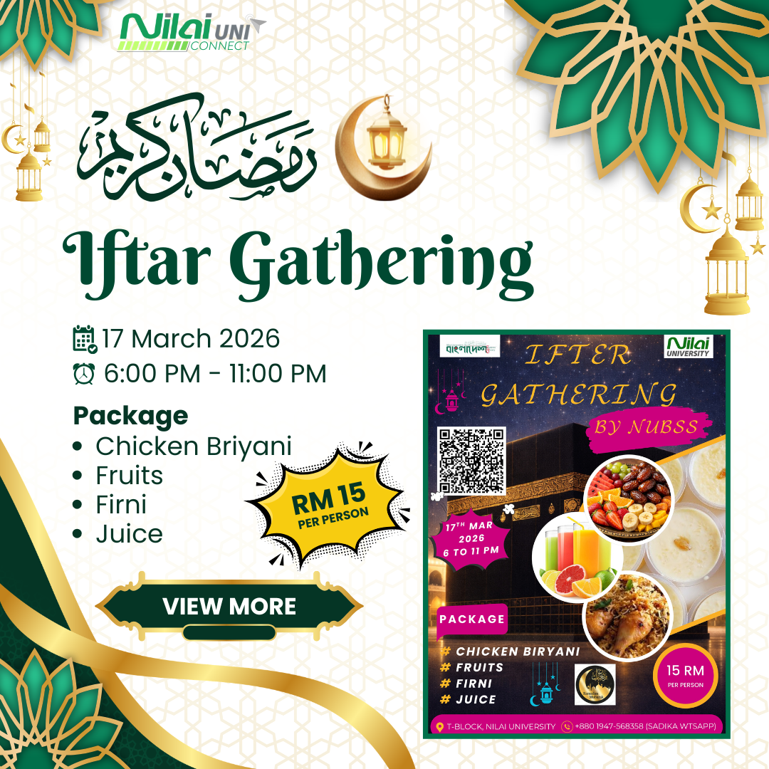 😍Iftar Gathering By the Nilai University Bangladesh Student Society😍 by Saidatina Safia Binti Mohd Ruslan - Friday, 27 February 2026, 10:31 AM Permalink Discuss this topic (0 replies so far)