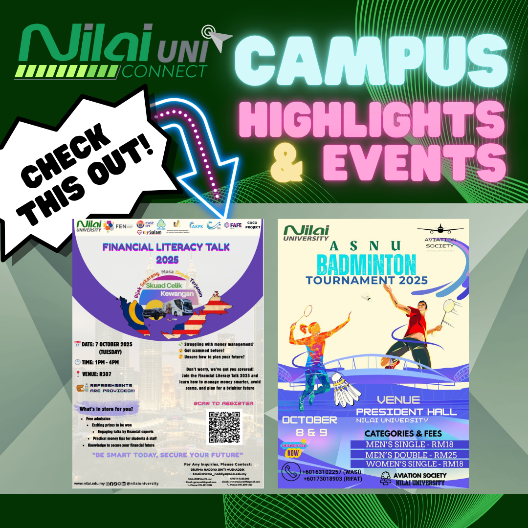 The Department of Accounting and Finance, Nilai University, in collaboration with Bank Negara Malaysia, invites you to a Financial Literacy Talk. 7 October 2025 (Tuesday)